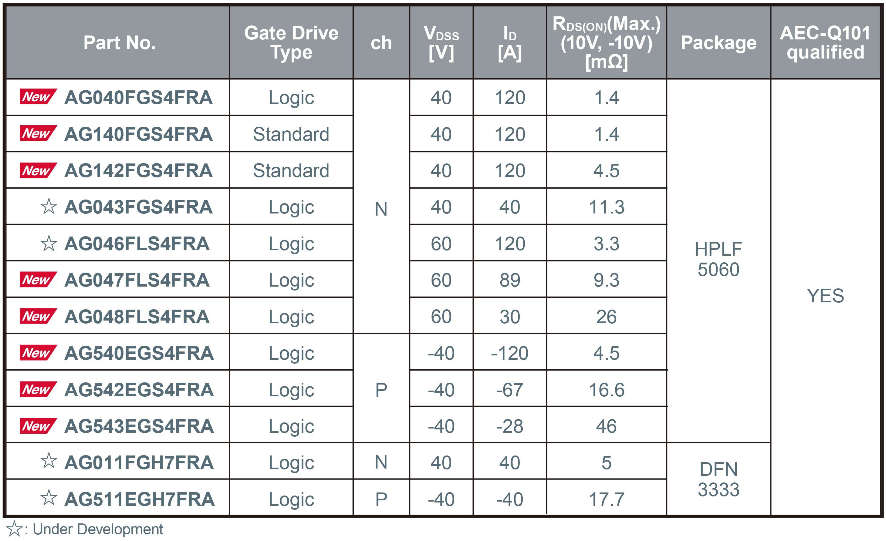 In addition to expanding the lineup of products using this package, mass production of the smaller DFN3333 (3.3mm × 3.3mm) package, which employs wettable flank technology, is scheduled to begin around February 2026. Furthermore, development has commenced on a TOLG (TO-Leaded with Gull-wing) package (9.9mm × 11.7mm) to further expand the lineup of high-power, high-reliability packages.