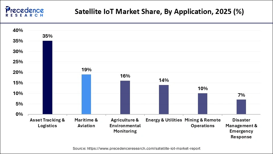 The asset tracking & logistics segment dominated the market with a 35% in 2025. The growing demand for real-time theft detection and the need to improve asset utilization increase the demand for satellite IoT. The robust growth of e-commerce and the transition towards LEO constellations require satellite IoT. The strong focus on enhancing customer service and the growing transportation of chemicals drives market growth.